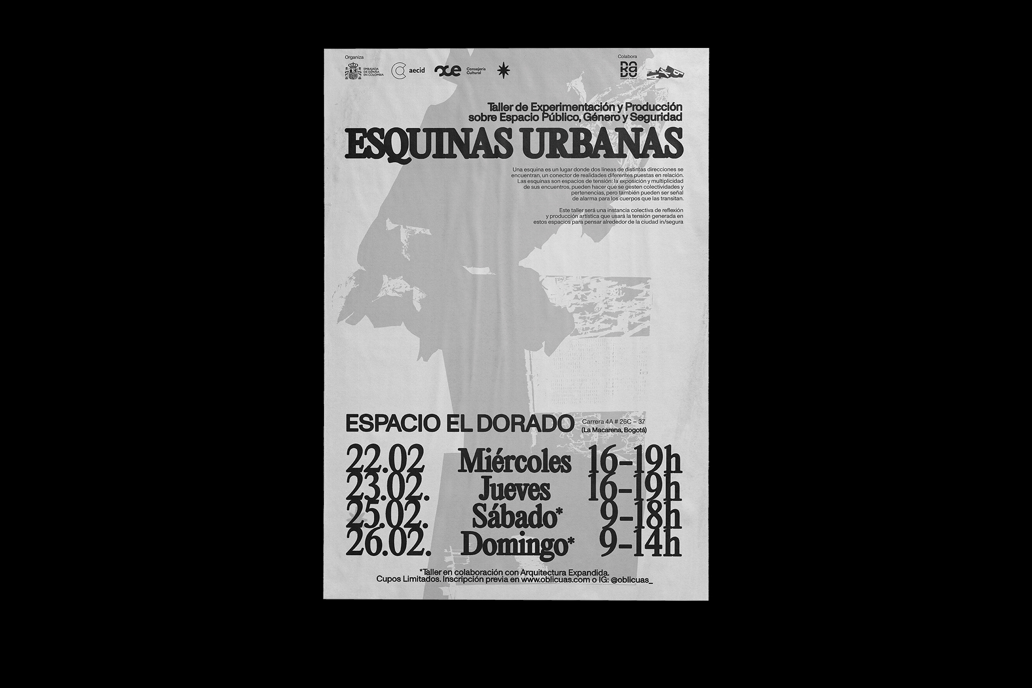 Visual identity for an exhibition and workshop in Bogota by spanish design collective Oblicuas. The identity was made for a series of events that centered around gender and public space and was made from elements found in the city of Bogota. Both digital and physical elements were used for the promotion of the event.